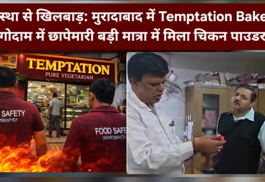 ‘Veg Bakery’ पर बड़ा खुलासा: Moradabad में TEMPATION’S के गोदाम से Chicken powder मिला, factory सीज