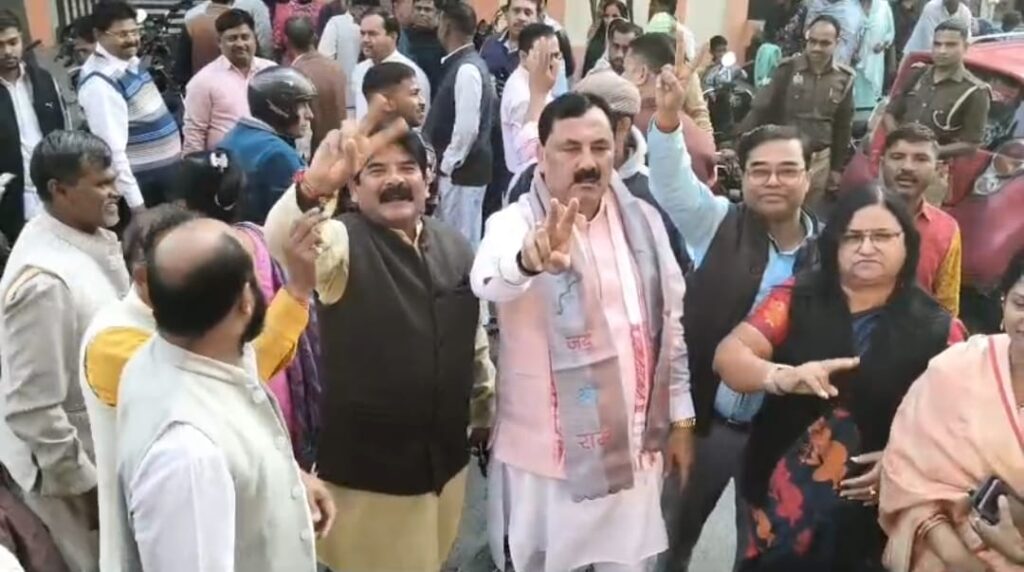 बिहार में जीत पर भाजपा ने बनाया जश्न, बांटी मिठाई