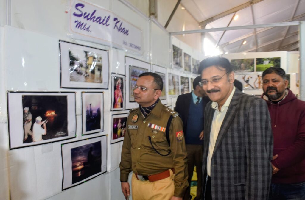मुरादाबाद। बुद्धि विहार स्थित गांधी मैदान में उदीषा चौपला साहित्योत्सव की फोटो गैलरी में लगे फोटो जर्नलिस्ट सुहेल खां के फोटो को सराहना करते स्कूल के छात्र। कई लोगों ने फोटो प्रदर्शनी लगाई है। वर्ल्ड लाइव एआर रहमान, वर्ल्ड लाइव असलम वारसी, विवेक शंकधार,राजेश राजा,हिमांशु बंसल,आदित्य व अन्य रहे।