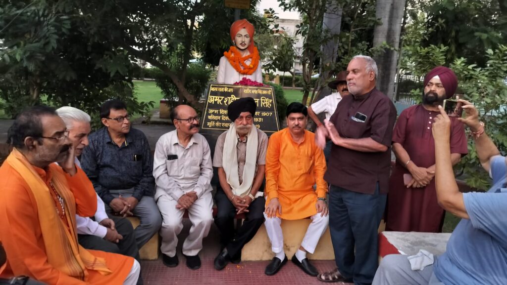 गोष्ठी से पूर्व भगत सिंह पार्क में लगी शहीदे आजम भगत सिंह की प्रतिमा पर गोष्ठी में मौजूूद सभी लोगो ने माल्यार्पण कर एवं पुष्प अर्पित कर भारत माता के इस सच्चे सपूत का भावपूर्ण स्मरण किया । कार्यक्रम में मुख्य अतिथि नेत्र विशेषज्ञ डाॅ महेंद्र सिंह वासु ने कहा कि सरदार भगतसिंह ने देश की आजादी में बहुत महत्वपूर्ण भूमिका निभाई । उन्होंने अपना जीवन देश के लिए कुर्बान कर दिया। यह देश और समाज सदैव उनका ऋणी रहेगा।