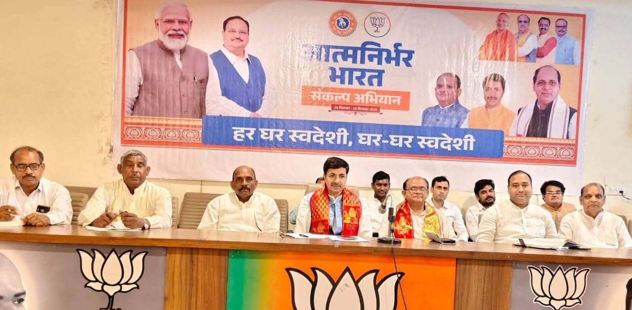 कहा कि आत्मनिर्भर भारत संकल्प अभियान को लेकर मंडल स्तर पर मंडल कार्यशाला 28, 29, 30 सितंबर तक होनी है जिसमें मंडल पदाधिकारी, मंडल अभियान समिति, शक्ति केंद्र संयोजक, बूथ अध्यक्ष, स्थानीय जनप्रतिनिधि, जिला पंचायत सदस्य, क्षेत्र पंचायत सदस्य, पार्षद, सभासद, मोर्चो के मंडल अध्यक्ष व महामंत्री, प्रकोष्ठों के संयोजक उपस्थित रहेंगे जिले में 15 से 20 दिन की आत्मनिर्भर भारत संकल्प यात्रा भी निकली जा सकती है। त्योहारों को ध्यान में रखते हुए हमें उत्सव के दौरान स्वदेशी उत्पाद के उपयोग को बढ़ावा देना है। दुर्गा पूजा एवं गरबा महोत्सव के दौरान पूजा समितियां के साथ संबंध में कर पूजा पंडाल में आत्मनिर्भर भारत थीम सुनिश्चित की जा सकती है। इसमें आत्मनिर्भरता संदेश वाले बैनर का उपयोग करके तथा पूजा पंडाल के समीप स्वदेशी उत्पादों के स्टॉल लगाना शामिल हो सकता है।