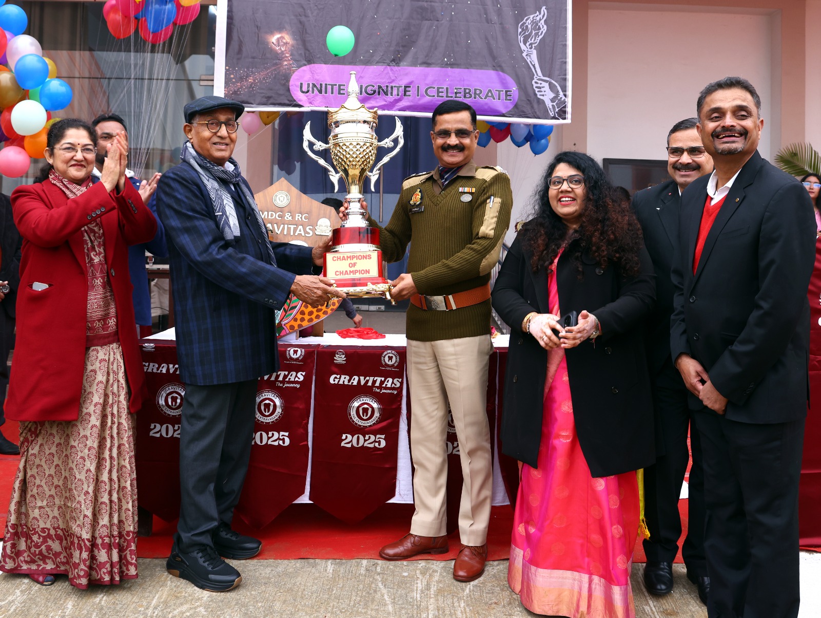 मेहमानों ने ग्रेविटास 4.0 की चैंपियन ट्रॉफी, शील्ड का किया अनावरण