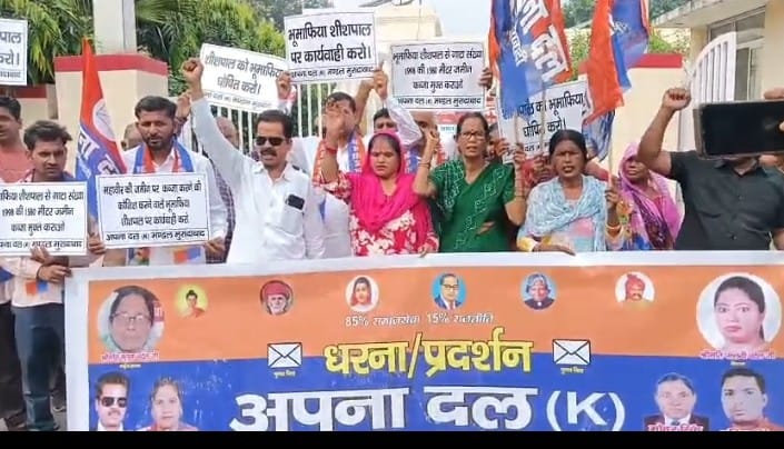 लव इंडिया मुरादाबाद। आज मण्डल अध्यक्ष डॉ.रामेश्वर दयाल तुरैहा के नेतृत्व में अपना दल कमेरावादी द्वारा कमिश्नर कार्यालय पर धरना/प्रदर्शन कर मायानगर ग्रह निर्माण सहकारी समिति मुरादाबाद के सदस्य शीशपाल से गाटा संख्या 1998 की 1580 वर्गमीटर जमीन को कब्जामुक्त कराने व शीशपाल द्वारा महावीर की गाटा संख्या 2677/1 रकबा 4620 वर्गमीटर जमीन को कब्जा किए जाने के उद्देश्य से अधिकारियों को झूठे प्रार्थना पत्र देने पर कार्यवाही की माँग की।