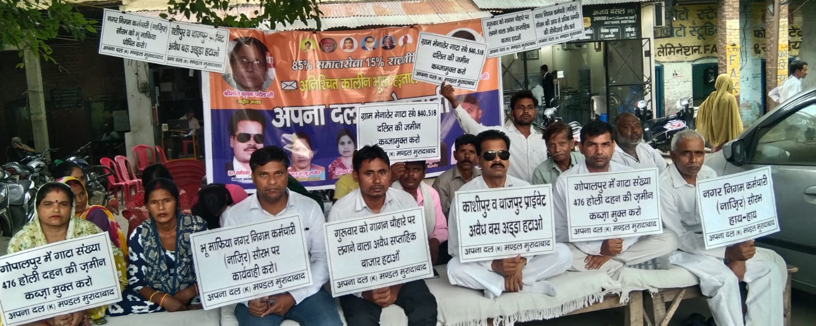 इस बीच भूख हड़ताल पर बैठे लोगों के बीच अपना दल कमेरावादी के मण्डल अध्यक्ष डॉ.रामेश्वर दयाल तुरैहा ने कहा कि गोपालपुर में स्थित गाटा संख्या 476 होली दहन की जमीन, ग्राम मैनाठेर में स्थित गाटा संख्या 840 व 518 की दलित की जमीन, ग्राम लांकडी फ़ाज़लपुर में गाटा संख्या 2115 में 5767.89 वर्ग मीटर भूमि,गाटा संख्या 3807/20 रकवा 0.2590 हे0, 2807/48 रकवा 0.2830 हे0 व 90 एकड़ जमीन को कब्जामुक्त कराने, आर.आर.एंटरप्राइजेज द्वारा घूस लेकर 632 सफाई कर्मचारी रखे जाने की जाँच कराने, मंगल बाजार व गुरुवार को दिल्ली रोड गागन चौराहे पर लगने वाला अवैध साप्ताहिक बाजार, महानगर के बीचोबीच स्थित काशीपुर व बाजपुर प्राइवेट अवैध बस अड्डा, रेलवे स्टेशन से इंपीरियल तिराहा तक दोनों साइड का अतिक्रमण आदि की मांगों को लेकर अपना दल के आंदोलित है लेकिन प्रशासन कार्रवाई नहीं कर रहा।