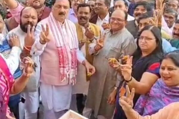 बिहार में जीत पर भाजपा ने बनाया जश्न, बांटी मिठाई