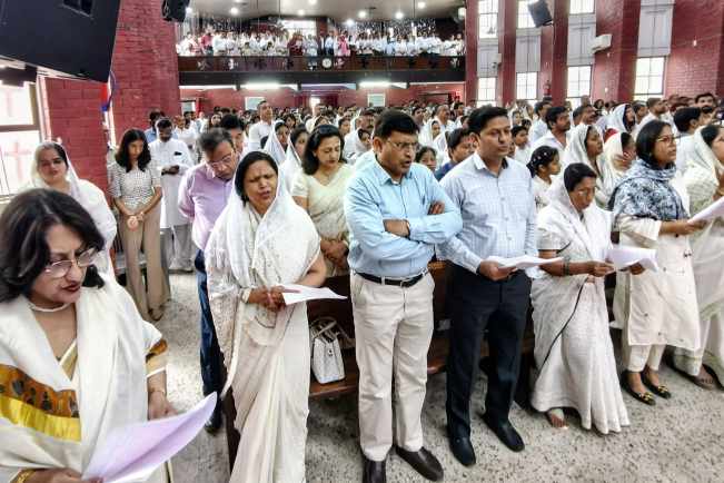 इस अवसर पर पादरी अनिल सी लाल व प्रार्थना में मौजूद पादरी बृजेश मेंसल, पादरी रोहित मैसी, पादरी अभिषेक विल्सन, एसके नैथन, अंतिम सिंह, सुरेंद्र एम लाल, क्लेमेंट षडमैन, रॉबिन मसीह, संजय लाल, बैनर एंथोनी, नीतू सिंह, राजन प्रेम मसीह, रूबी मौसी, पूनम मैसी, दीप्ति विल्सन सहित अन्य धर्मगुरु और समाज के लोग मौजूद रहे।