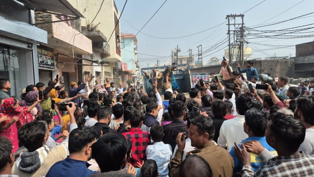 तेंदुए के घर में बंद होने की खबर आग की तरह फैल गई। हजारों लोग मेघ सिंह के घर के बाहर और छतों पर जमा हो गए। सड़कों पर दूर-दूर तक बाइकों की कतार लग गई।