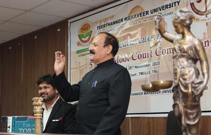 तीर्थंकर महावीर यूनिवर्सिटी के कॉलेज ऑफ लॉ एंड लीगल स्टडीज की ओर से लेक्स कर्निवाल- चैप्टर 02 के तहत पांचवें मूट कोर्ट में मुरादाबाद द बार एसोसिएशन एंड लाइब्रेरी के अध्यक्ष आनन्द मोहन गुप्ता ने बतौर जज की शिरकत