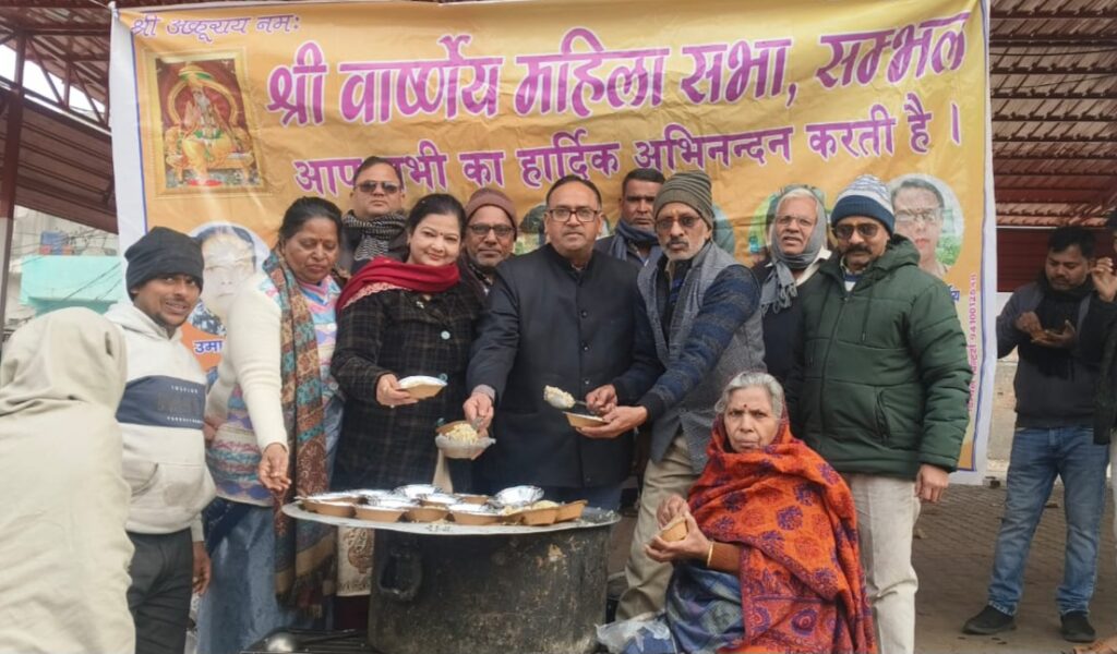 इस अवसर पर महावीर प्रसाद, जगत आर्य, त्रिभुवन सर्राफ, सोनू कुमार गुप्ता एडवोकेट, देवेंद्र वार्ष्णेय एडवोकेट, विपिन सर्राफ, सुमित श्याम, पारस वार्ष्णेय एडवोकेट, नवरत्न सर्राफ, मनीष सर्राफ, दीपेश वार्ष्णेय, कौशल मेडिकल, अतुल वार्ष्णेय सहित अन्य लोगों ने खिचड़ी वितरण कर मकर संक्रांति के महत्व पर प्रकाश डाला। जबकि श्री वार्ष्णेय महिला सभा संभल की दीपा वार्ष्णेय,शिखा प्रकाश,संध्या वार्ष्णेय, अंजू वार्ष्णेय,पूजा वार्ष्णेय,आदि ने खिचड़ी वितरण में योगदान दिया।