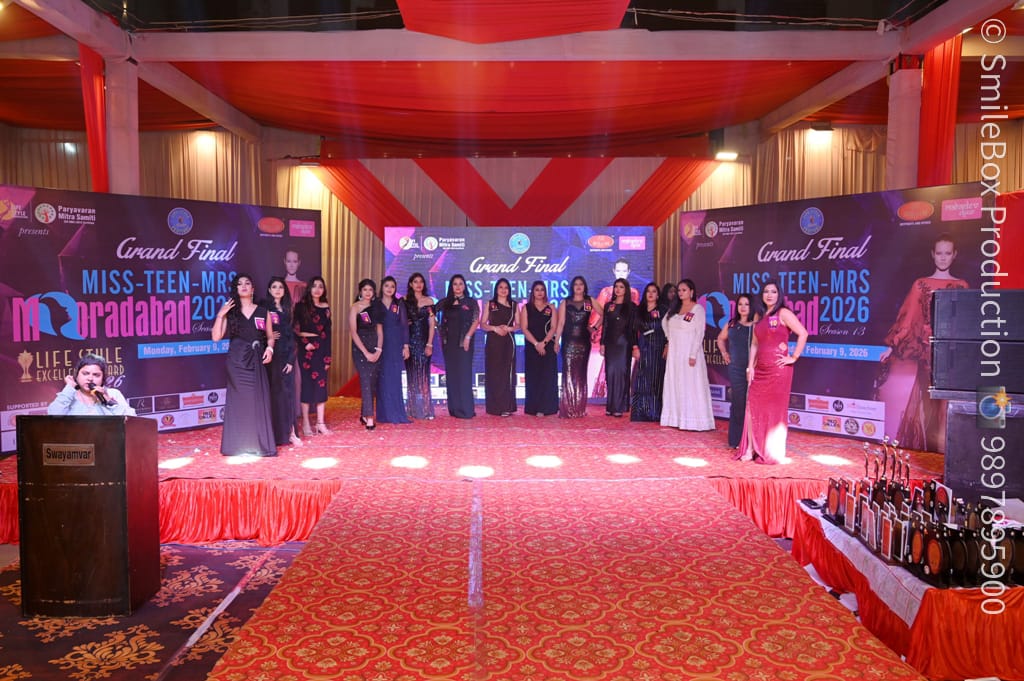 🎉 लव इंडिया, मुरादाबाद। लाइफ स्टाइल फाउंडेशन एवं पर्यावरण मित्र समिति के संयुक्त तत्वावधान में मिस एंड मिसेज मुरादाबाद 2026 प्रतियोगिता का भव्य एवं सफल आयोजन किया गया। इस कार्यक्रम में शहर की प्रतिभाशाली युवतियों और महिलाओं ने आत्मविश्वास, सौंदर्य, प्रतिभा और व्यक्तित्व का शानदार प्रदर्शन किया।
