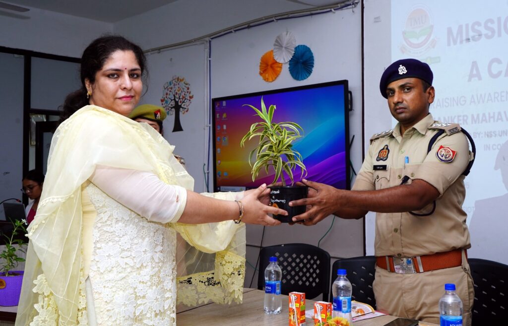 लव इंडिया, मुरादाबाद। उत्तर प्रदेश पुलिस एवम् टीएमयू की एनएसएस इकाई के संयुक्त तत्वावधान में तीर्थंकर महावीर यूनिवर्सिटी, मुरादाबाद के डिपार्टमेंट ऑफ फिजियोथेरेपी की ओर से मिशन शक्ति 5.0 के तहत कॉल फॉर हेल्प जागरूकता कार्यक्रम में महिला सुरक्षा की सामूहिक प्रतिज्ञा ली गई।