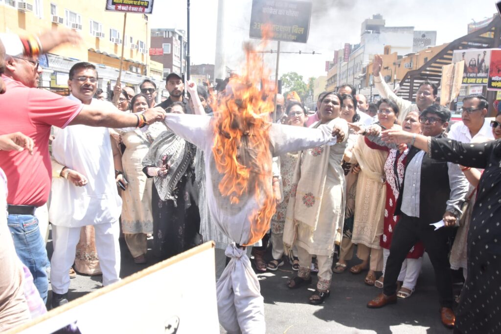 भाजपा महिला मोर्चा की कार्यकर्ताओं ने राहुल गांधी और अखिलेश यादव के प्रतीकात्मक पुतले जलाए और जोरदार नारेबाजी की। विरोध प्रदर्शन के जरिए संदेश दिया कि महिलाओं के मुद्दों पर राजनीति बर्दाश्त नहीं होगी।