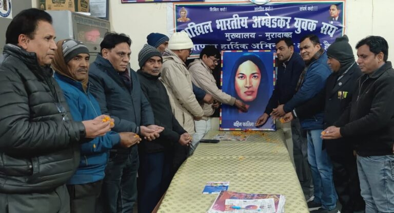 लव इंडिया, मुरादाबाद। अखिल भारतीय अम्बेडकर संघ द्वारा मेरठ जनपद के कपसाड़ क्षेत्र में एससी वर्ग की एक बेटी के अपहरण एवं उसकी माता की निर्मम हत्या की हृदयविदारक घटना के विरोध में एक अति आवश्यक बैठक का आयोजन डॉ. अम्बेडकर पार्क, सिविल लाइंस, मुरादाबाद में किया गया। बैठक में संघ ने जघन्य घटना की … Continue reading मेरठ में एससी वर्ग की बेटी के अपहरण एवं उसकी मां की हत्या की निंदा, कार्रवाई हो