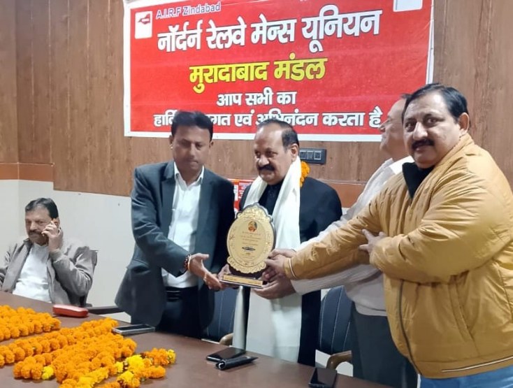 लव इंडिया मुरादाबाद। नॉर्दर्न रेलवे मेंस यूनियन, मुरादाबाद मंडल ने मंडल मंत्री कामरेड राजेश चौबे के नेतृत्व में अधिवक्ता एवं बार एसोसिएशन के नवनिर्वाचित अध्यक्ष आनंद मोहन गुप्ता के सम्मान में भव्य सम्मान सभा का आयोजन किया। समारोह में रेलवे यूनियन के वरिष्ठ नेताओं और पदाधिकारियों ने सम्मान व्यक्त किया।