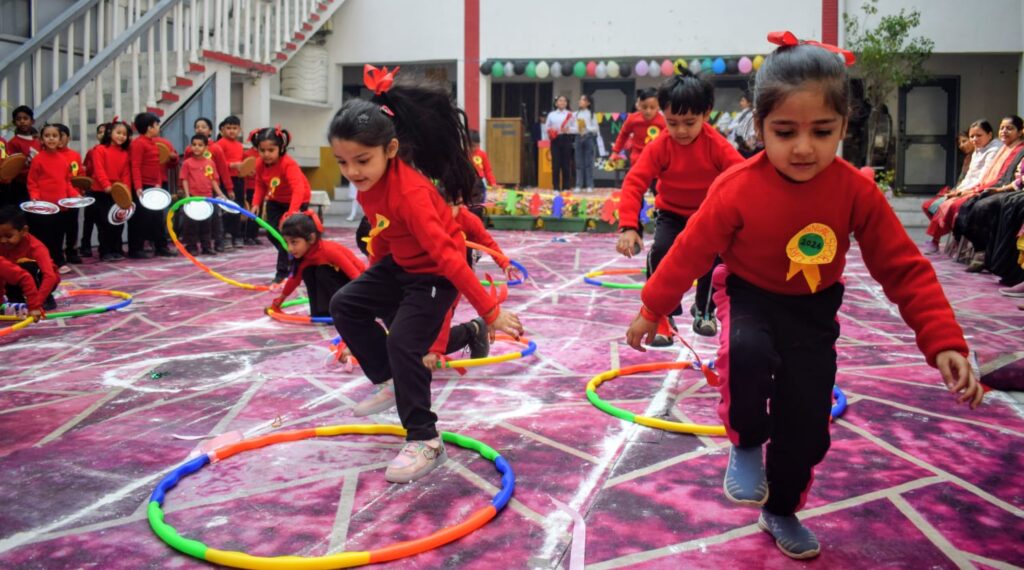 वार्षिक खेलकूद समारोह में दौड़ प्रतियोगिता, हुला-हूप रेस, छाता रेस, संतुलन दौड़, बाधा दौड़ सहित कई रोचक खेलों का आयोजन किया गया। नन्हे बच्चों ने रंग-बिरंगे छातों और खेल सामग्री के साथ मंच पर शानदार प्रस्तुति दी, जिसने सभी का मन मोह लिया।