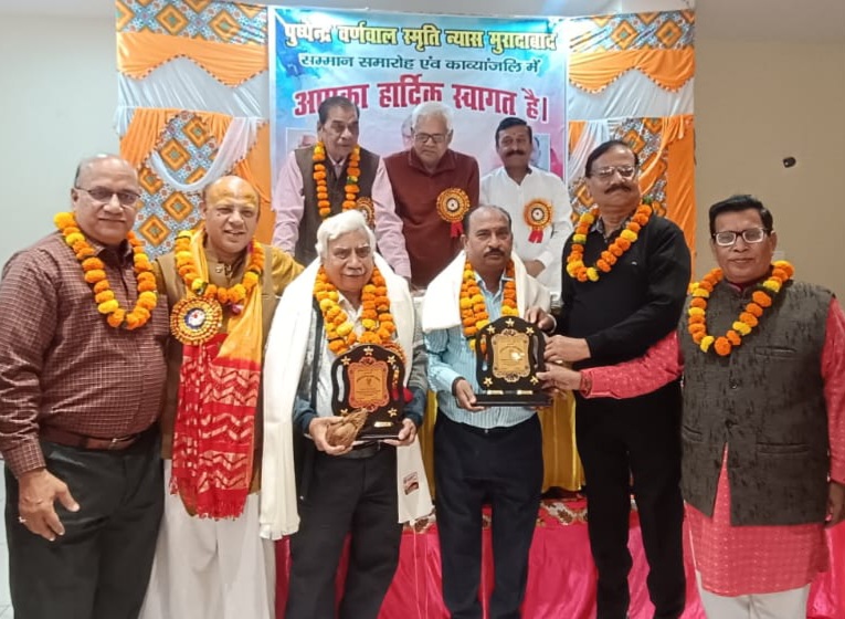 लव इंडिया, मुरादाबाद। पुष्पेंद्र वर्णवाल स्मृति न्यास मुरादाबाद संस्था द्वारा यादव धर्मशाला कंजरी सराय में कवि सम्मेलन एवं सम्मान समारोह का आयोजन किया गया। कार्यक्रम में कवि फक्कड़ मुरादाबादी एव विवेक निर्मल का सम्मानित किया गया। अध्यक्षता डॉ. महेश दिवाकर ने तथा संचालन संस्था के संयोजक पंडित रवि चतुर्वेदी ने किया।