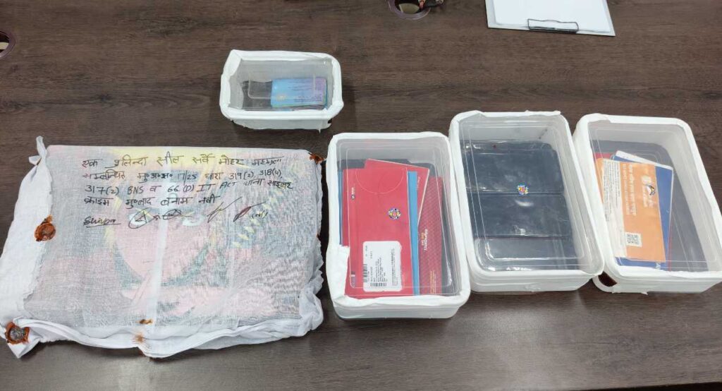 लैपटाप, 04 मोबाइल, 9 एटीएम कार्ड, 11 चैक बुक, 8 पासबुक, आधार कार्ड, पैन कार्ड।