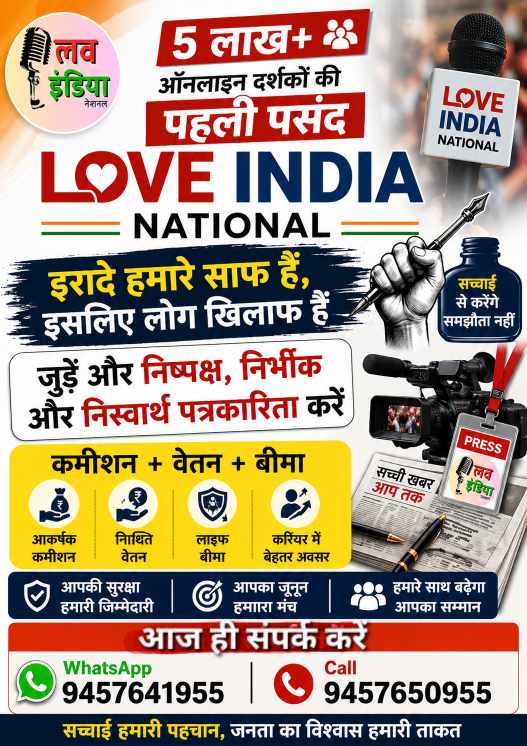 होटल ग्रांड साई में हुआ आयोजन, संगठन विस्तार और जनसेवा को लेकर बनी रणनीति लव इंडिया, मुरादाबाद। शिवसेना द्वारा मुरादाबाद में आयोजित चिंतन शिविर में आम जनता के मुद्दों को लेकर बड़ा निर्णय लिया गया। होटल ग्रांड साई में आयोजित इस शिविर में संगठन ने भ्रष्टाचार और आम नागरिकों के उत्पीड़न के खिलाफ जेल भरो…