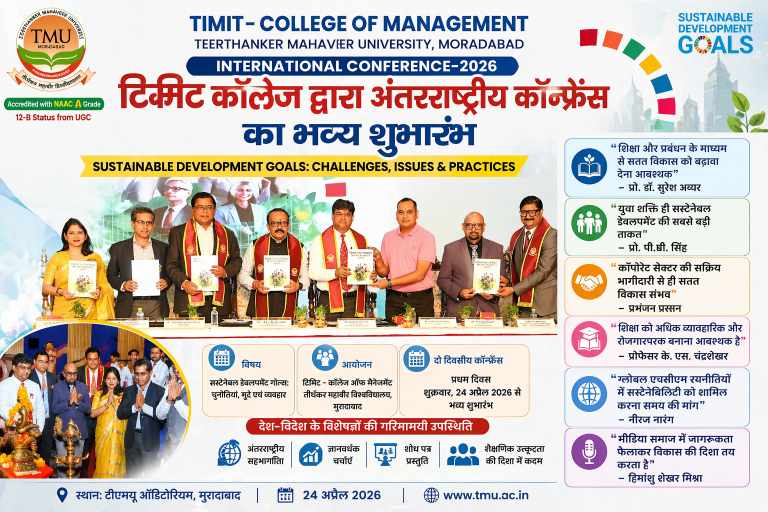 - TMU Splash में स्टुडेंट्स ने सांस्कृतिक, कलात्मक व सृजनात्मक प्रस्तुतियों ने जीता दिलतीर्थंकर महावीर यूनिवर्सिटी के कॉलेज ऑफ कम्प्यूटिंग साइंसेज़ एंड इन्फॉर्मेशन टेक्नोलॉजी-सीसीएसआईटी में सेलिब्रेशन ऑफ कल्चर, क्रिएटिविटि एंड टैलेंट थीम पर सांस्कृतिक महोत्सव स्प्लैश-2026 लव इंडिया, मुरादाबाद। तीर्थंकर महावीर यूनिवर्सिटी, मुरादाबाद के कॉलेज ऑफ कम्प्यूटिंग साइंसेज़ एंड इन्फॉर्मेशन टेक्नोलॉजी-सीसीएसआईटी में भव्य एवम् रंगारंग सांस्कृतिक महोत्सव स्प्लैश-2026 में सेलिब्रेशन ऑफ कल्चर, क्रिएटिविटि एंड टैलेंट थीम पर स्टुडेंट्स…