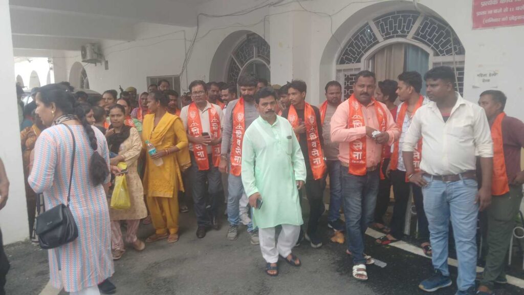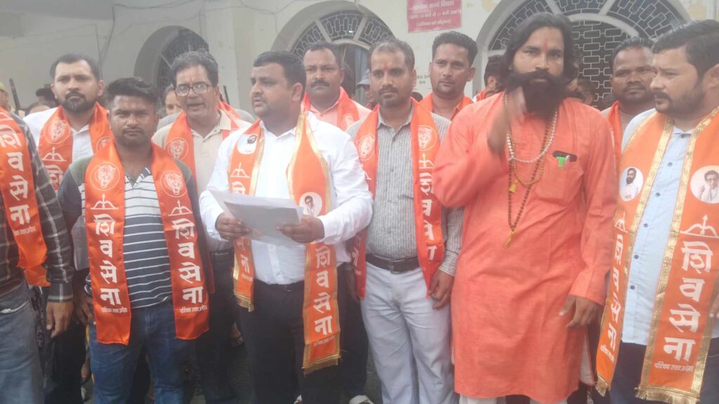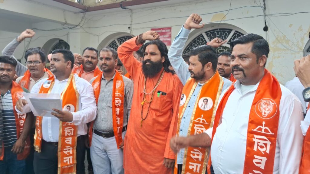 Shiv sena का प्रदर्शन, कहा- भ्रष्टाचार उजागर करने पर प्रदेश महासचिव मनोज उर्फ लल्लन दुबे को साजिशन किया गिरफ्तार, रिहा किया जाए