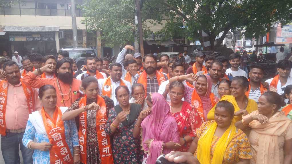 Shiv sena का प्रदर्शन, कहा- भ्रष्टाचार उजागर करने पर प्रदेश महासचिव मनोज उर्फ लल्लन दुबे को साजिशन किया गिरफ्तार, रिहा किया जाए