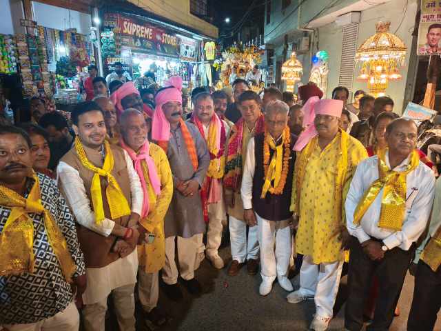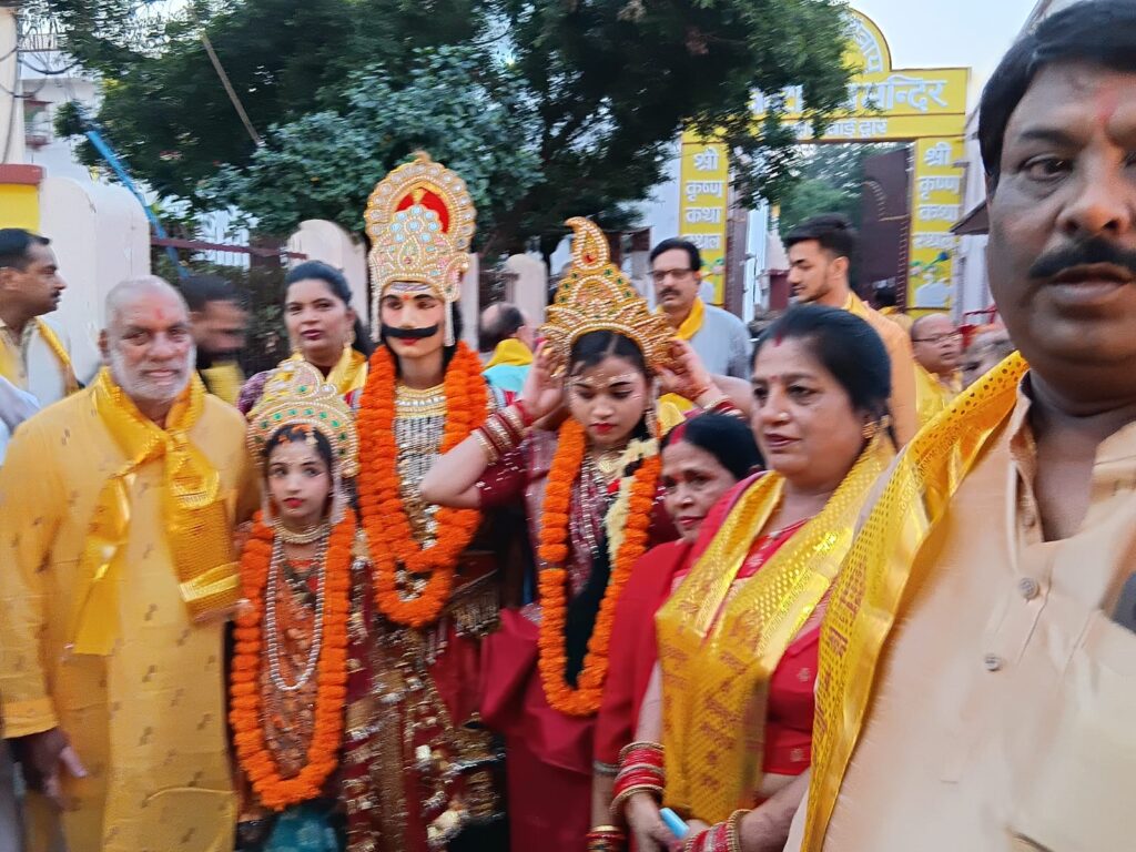 भारत सेवा ट्रस्ट पर भाजपा नेत्री श्रुति गंगवार के साथ भाजपा कार्यकर्ताओं तथा बजरंग दल के पदाधिकारियों आशु अग्रवाल, दिव्य बहादुर चतुर्वेदी, कमलेश वर्मा, जितेन्द्र कश्यप, देवेन्द्र, सोम, अखिलेश सिंह, अलंकृत सक्सेना, विशाल सक्सेना, विशाल मेहरोत्रा, मनोज अरोरा ने शोभायात्रा पर पुष्प वर्षा की एवं मिष्ठान वितरण किया। मनोज भारती जी ने सभी का पगड़ी बांध कर स्वागत किया। कांग्रेस नेता प्रेम प्रकाश अग्रवाल, दिनेश दद्दा ने चित्र गुप्तचौक पर रथ पर सवार स्वरूपों की आरती की।
