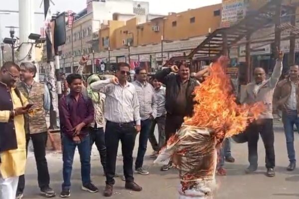 संसद विवाद के विरोध में इंपीरियल चौराहे पर पुतला दहन राष्ट्रीय योगी सेना कार्यकर्ताओं ने राहुल गांधी के खिलाफ जताया आक्रोश