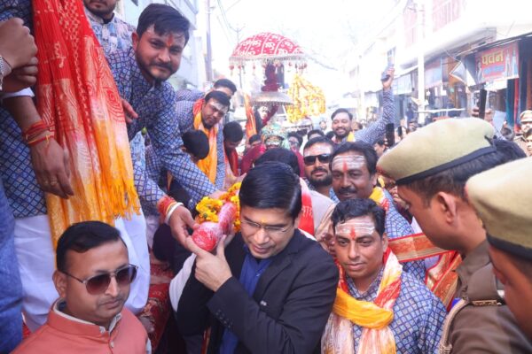 बहजोई में निकली महाकाल की शाही सवारी, डीएम डॉ. राजेंद्र पैंसिया ने की आरती
