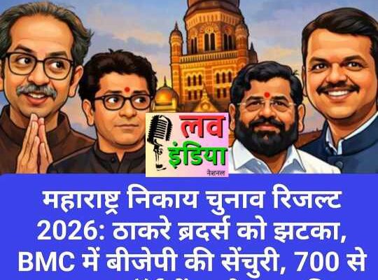 BMC में भाजपा+शिवसेना (शिंदे) गठबंधन 116 सीटों पर आगे, लातूर में कांग्रेस ने कब्जाई बहुमत; संजय राउत ने रुझानों पर किया विवादित बयान 🔹 मुंबई/महाराष्ट्र। 15 जनवरी को आयोजित महाराष्ट्र नगर निगम चुनावों के प्रारंभिक रुझानों में भाजपा गठबंधन 29 नगर निगमों में से 23 में बढ़त बनाए हुए है। विशेष रूप से बृहन्मुंबई नगर…
