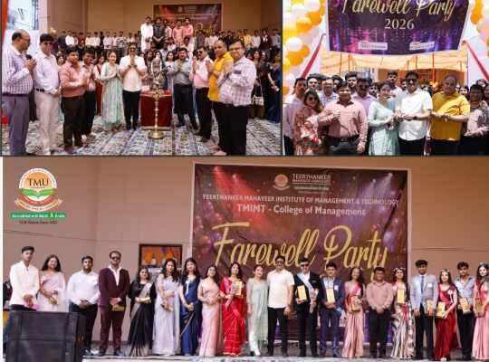 लव इंडिया, मुरादाबाद। टिमिट में एमबीए और बी.कॉम फाइनल ईयर के छात्रों के लिए “फेयरवेल पार्टी” का भव्य और यादगार आयोजन बड़े ही उत्साह और उमंग के साथ किया गया। कार्यक्रम की शुरुआत रंगारंग सांस्कृतिक प्रस्तुतियों, डांस, म्यूजिक और फैशन शो से हुई, जिसने पूरे माहौल को जीवंत और उत्सवमय बना दिया। छात्रों ने न…