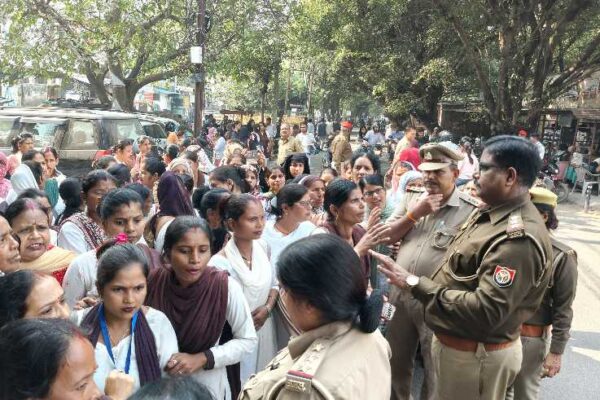 आशा- आशा संगिनी का अंबेडकर पार्क से जुलूस, कलेक्ट्रेट पर प्रदर्शन के दौरान पुलिस से नोकझोंक
