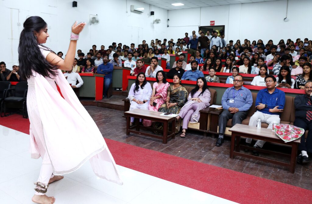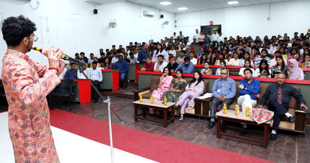 सांस्कृतिक प्रस्तुतियों की शुरुआत बीटेक-एआई की छात्रा अक्षरा वर्मा के मनमोहक कथक से हुई। अक्षरा की भाव-भंगिमाओं, ताल और लय के अद्भुत समन्वय ने सभी को मंत्रमुग्ध कर दिया। बीटेक-सीएसई के छात्र मोहित जैन ने राधा-कृष्ण थीम पर बांसुरी वादन करके मधुर धुनों ने पूरे वातावरण को आध्यात्मिक और भावपूर्ण बना दिया। फूड स्टॉल, कमर्शियल स्टॉल, क्रिएटिव लैब स्टॉल और गेमिंग स्टॉल विशेष आकर्षण का केन्द्र रहे। कार्यक्रम में नृत्य, गायन, कहानी-वाचन, स्टैंड-अप प्रस्तुति, रंगोली, वीडियोग्राफी और फोटोबूथ गतिविधियों में स्टुडेंट्स ने अपनी प्रतिभा, रचनात्मकता और आत्मविश्वास का शानदार प्रदर्शन किया।