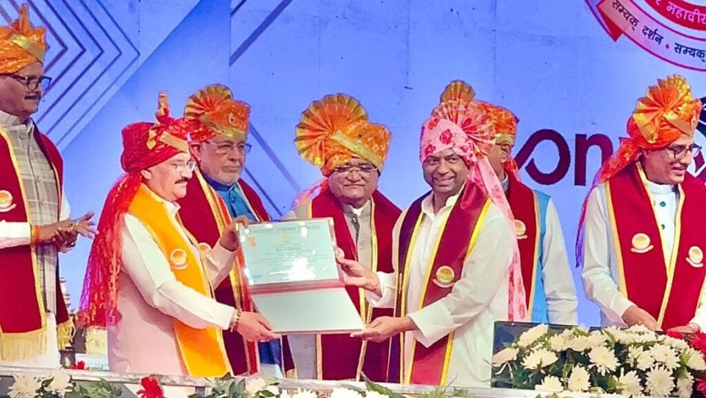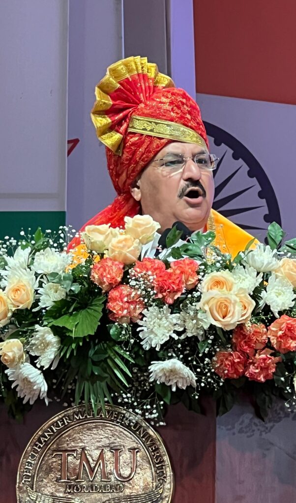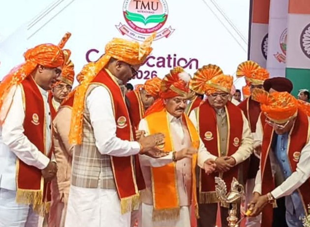 उमेश लव, लव इंडिया, मुरादाबाद। तीर्थंकर महावीर यूनिवर्सिटी (टीएमयू) के दीक्षांत समारोह-2026 में केंद्रीय स्वास्थ्य एवं परिवार कल्याण तथा रसायन एवं उर्वरक मंत्री जेपी नड्डा मुख्य अतिथि के रूप में शामिल हुए। इस अवसर पर उन्होंने 36 शोधार्थियों को पीएचडी की डिग्री प्रदान की और 108 गोल्ड, 105 सिल्वर तथा 98 ब्रॉन्ज मेडल देकर छात्रों को सम्मानित किया।