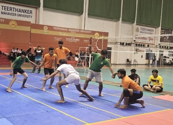 लव इंडिया, मुरादाबाद। तीर्थंकर महावीर यूनिवर्सिटी के टिमिट कॉलेज ऑफ फिजिकल एजुकेशन की ओर से इंटरकॉलिजिएट चौंपियनशिप- 2026 की ब्वायज़ कबड्डी प्रतियोगिता में नर्सिंग कॉलेज ने मैनेजमेंट कॉलेज को 39-38 से हराकर मैच अपने नाम किया। मेडिकल कॉलेज और इंजीनियरिंग कॉलेज के बीच मेडिकल कॉलेज ने टॉस जीतकर रेड करने का निर्णय लिया। फर्स्ट हॉफ के बाद दोनों ही टीमों का स्कोर 22-22 था।