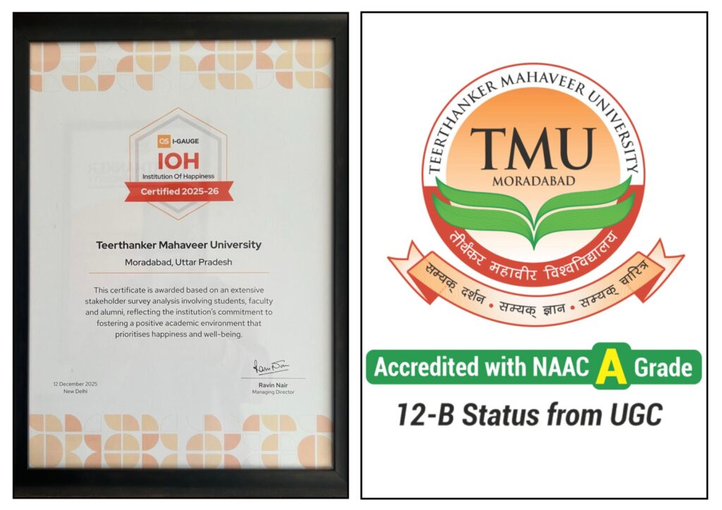 लव इंडिया, मुरादाबाद। तीर्थंकर महावीर यूनिवर्सिटी, मुरादाबाद की झोली में एक और प्रतिष्ठित अवार्ड आया है। क्यूएस आई-गेज की ओर से टीएमयू को इंस्टीट्यूशन ऑफ हैप्पीनेस-आईओएच अवार्ड-2025-26 से नवाजा गया है। टीएमयू को यह अवार्ड सकारात्मक, समावेशी और कल्याण उन्मुख शैक्षणिक वातावरण को बढ़ावा देने के लिए मिला है। इस वर्ष आईओएच की थीम वन कैंपस, मैनी स्माइल्सः सेलिब्रेटिंग एवरी वाइस इन वैल-बिंग रही।