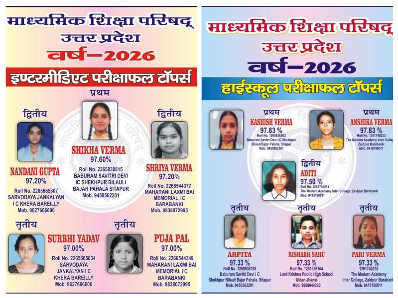 लव इंडिया, प्रयागराज/ उत्तर प्रदेश माध्यमिक शिक्षा परिषद (UP Board) ने वर्ष 2026 के हाईस्कूल (10वीं) और इंटरमीडिएट (12वीं) परीक्षा परिणाम घोषित कर दिए हैं। इस बार न सिर्फ रिजल्ट रिकॉर्ड समय में जारी हुआ, बल्कि टॉपर्स लिस्ट में भी कई जिलों का शानदार प्रदर्शन देखने को मिला।