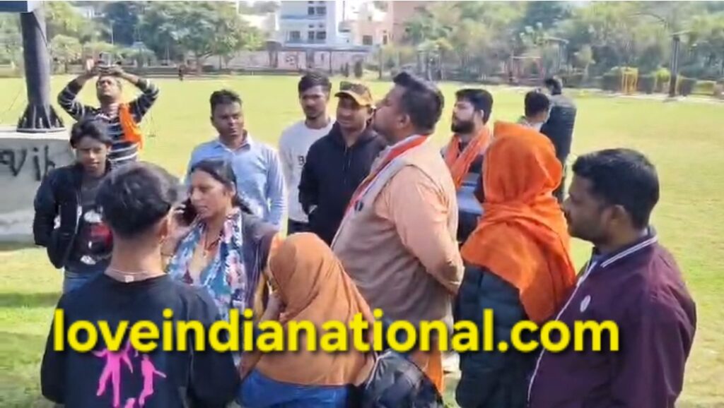 उमेश लव लव इंडिया मुरादाबाद। वैलेंटाइन डे के अवसर पर महानगर में कुछ हिंदूवादी संगठनों ने ‘पाश्चात्य संस्कृति के विरोध’ के नाम पर होटल, रेस्टोरेंट और पार्कों में अभियान चलाया। इस दौरान कंपनी बाग पार्क में एक हिंदू युवक और मुस्लिम युवती को पकड़ा और पूछताछ के बाद मुस्लिम युवती से हिंदू युवक को राखी बंधवाई और हिंदू युवक से मुस्लिम युवती के पैर छुपवाए। राखी बंधवाने की घटना चर्चा का विषय बन गई।