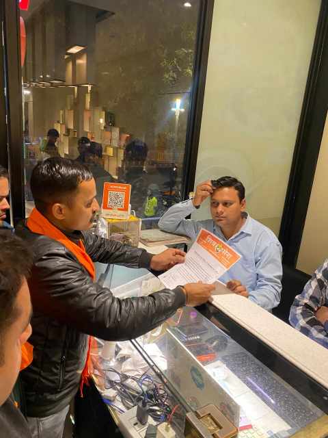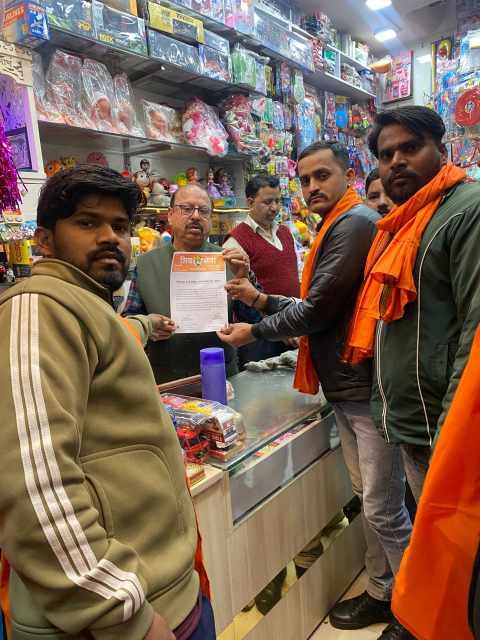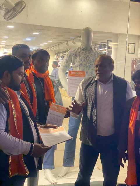 शिवसेना जिला प्रमुख वीरेंद्र अरोड़ा के निर्देश पर युवा सेना महानगर प्रमुख शिबू पांडे के नेतृत्व में कार्यकर्ताओं की एक इकाई ने शहर के विभिन्न प्रतिष्ठानों—रेस्टोरेंट, होटल, मॉल और गिफ्ट गैलरी—में जाकर पत्र सौंपे।