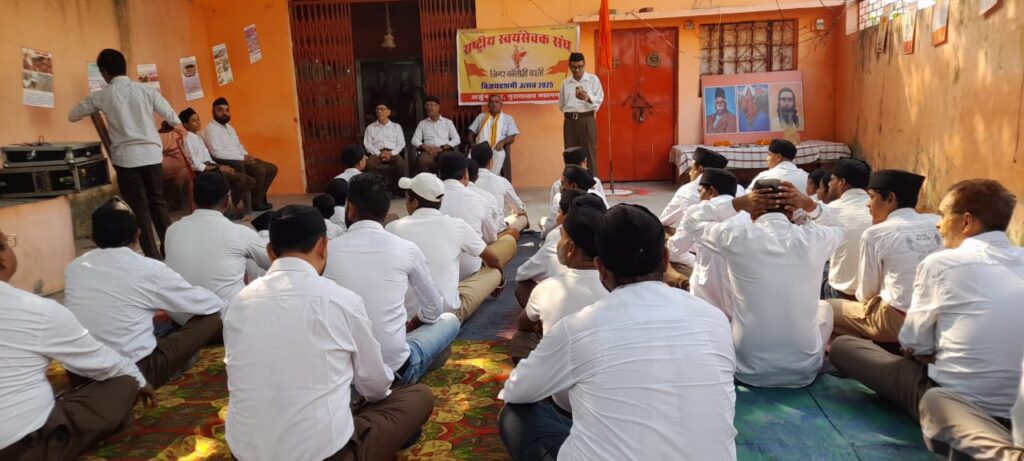आज पथसंचलन के कार्यक्रमों इस श्रृंखला में 1= पीतल नगरी की बलदेव पुरी बस्ती में प्रातः 8:30 बजे कार्यक्रम रहा जिसमें बृजमोहन जी विभाग प्रचारक मुख्य वक्ता रहे।